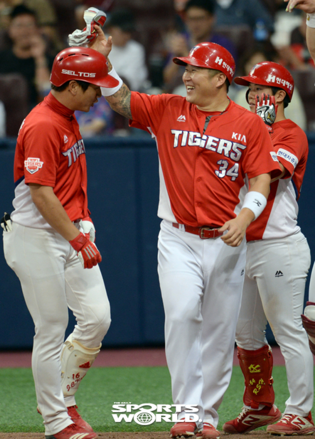 [SW포토] 최형우의 축하를 받는 김주찬 기사입력 2019-06-26 20:02:34 기사수정 2019-06-26 20:02:37 글씨 크기 선택 가장 작은 크기 글자 한 단계 작은 크기 글자 기본 크기 글자 한 단계 큰 크기 글자 가장 큰 크기 글자 [스포츠월드 김용학 기자] 프로야구 KIA 타이거즈의 김주찬이 26일 고척스카이돔에서 열린 '2019 신한은행 MY CAR KBO리그' 키움 히어로즈와의 경기 5회초 1사 1루 상황서 2점 홈런을 친 뒤 최형우의 축하를 받고 있다. 사진=김용학 기자 yhkim@sportsworldi.com 2019.06.26. [ⓒ 세계비즈앤스포츠월드 & sportsworldi.com, 무단전재 및 재배포 금지] 메뉴보기 페이스북 공유 트위터 공유 url 공유 더보기