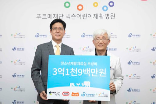 [김수길 기자] 넥슨재단은 최근 푸르메재단 넥슨어린이재활병원(서울 마포구 상암동 소재)에 청소년 재활치료실 설립·운영을 위한 기금으로 3억 1900만 원을 전달했다.