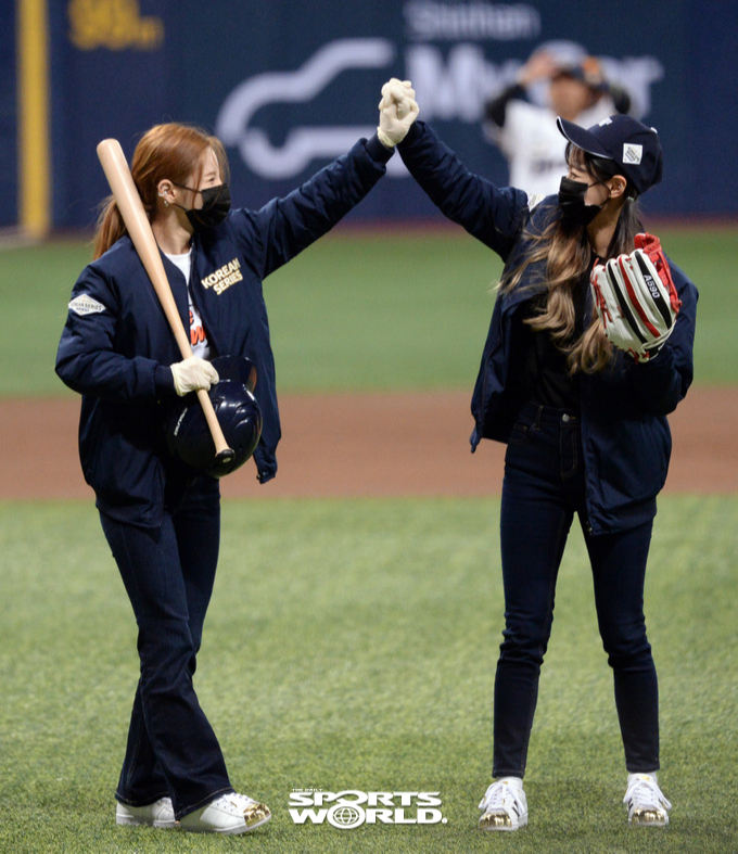 [SW포토]시구 시타하는 이달의 소녀 희진-츄 기사입력 2020-11-23 18:33:32 기사수정 2020-11-23 18:33:31 글씨 크기 선택 가장 작은 크기 글자 한 단계 작은 크기 글자 기본 크기 글자 한 단계 큰 크기 글자 가장 큰 크기 글자 [스포츠월드 김두홍 기자] 걸그룹 이달의 소녀 희진과 츄가 23일 고척스카이돔구장에서 열린 '2020 KBO 포스트시즌 한국시리즈'5차전 두산과 NC의 경기에 앞서 시구와 시타를 하고 있다. 고척=김두홍 기자 kimdh@sportsworldi.com 2020.11.23. [ⓒ 세계비즈앤스포츠월드 & sportsworldi.com, 무단전재 및 재배포 금지] 메뉴보기 페이스북 공유 트위터 공유 url 공유 더보기