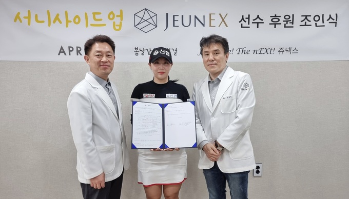 조인서에 따르면 청담 쥬넥스 의원은 앞으로 1년간 서니사이드업 에이프릴27(April27)의 KLPGA 골프단 프로골퍼에게 년간 2억원 상당의 피부과 진료와 시술을 협찬으로 진행한다. 이와 함께 두 업체간 상호 비즈니스 확대를 위한 업무 협약도 체결했다.