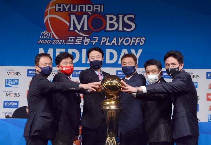 [SW포토]우승트로피를 잡아라! 기사입력 2021-04-08 11:58:37 기사수정 2021-04-08 11:58:36 글씨 크기 선택 가장 작은 크기 글자 한 단계 작은 크기 글자 기본 크기 글자 한 단계 큰 크기 글자 가장 큰 크기 글자 [스포츠월드 김두홍 기자]8일 호텔리베라서울에서 열린 '2020-2021 현대모비스 프로농구 플레이오프 미디어데이'에서 각 팀 감독들이 포즈를 취하고 있다. 사진=김두홍 기자 kimdh@sportsworldi.com 2021.04.08. [ⓒ 세계비즈앤스포츠월드 & sportsworldi.com, 무단전재 및 재배포 금지] 메뉴보기 페이스북 공유 트위터 공유 url 공유 더보기