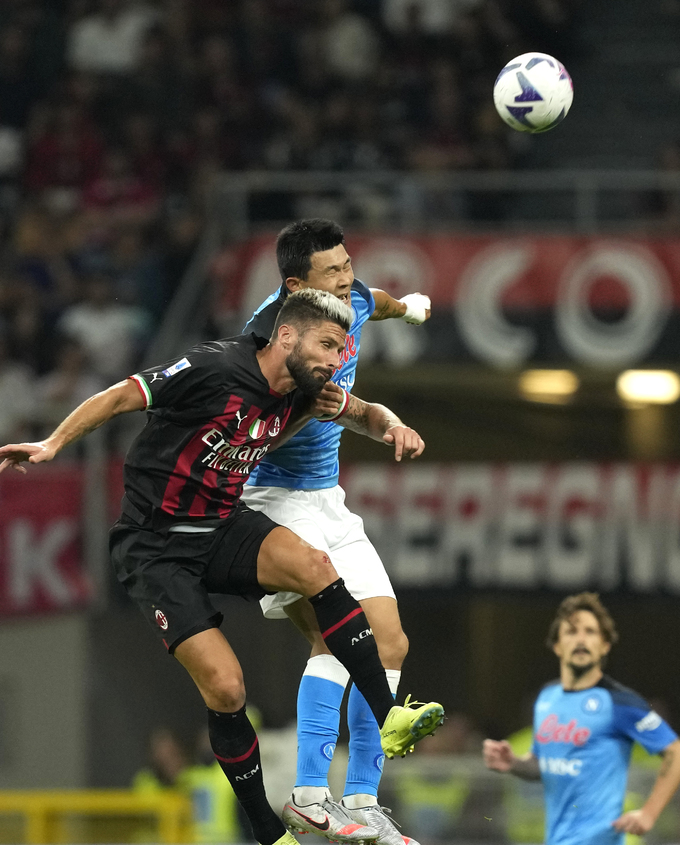 나폴리는 4-3-3 포메이션으로 나섰다. 김민재는 ‘4’에서 아미르 라흐마니와 함께 중앙 수비수로 나섰다. 시작부터 존재감을 뽐냈다. 홈팀 밀란은 킥오프와 동시에 나폴리를 압박했으나 김민재의 수비에 모두 막혔다. 밀란은 과거 프랑스의 주전 공격수였던 올리비에 지루를 중심으로 공격을 전개했다. 지루는 최전방에서 힘, 제공권, 연계 등 공격수로서의 강점을 두루 갖춘 선수다. 실제 전반 12분 나폴리 골대를 맞추는 등 날카로운 모습을 선보였다. 하지만 김민재를 넘지 못했다.