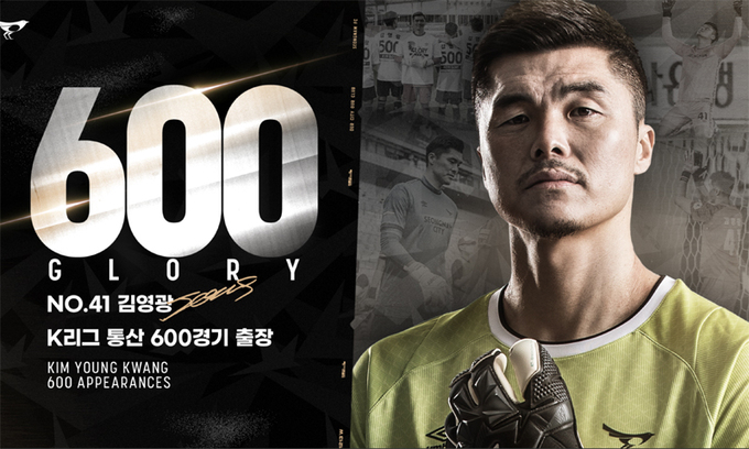 성남FC 골키퍼 김영광이 K리그 통산 600번째 경기 출장을 하며 대기록을 세웠다.