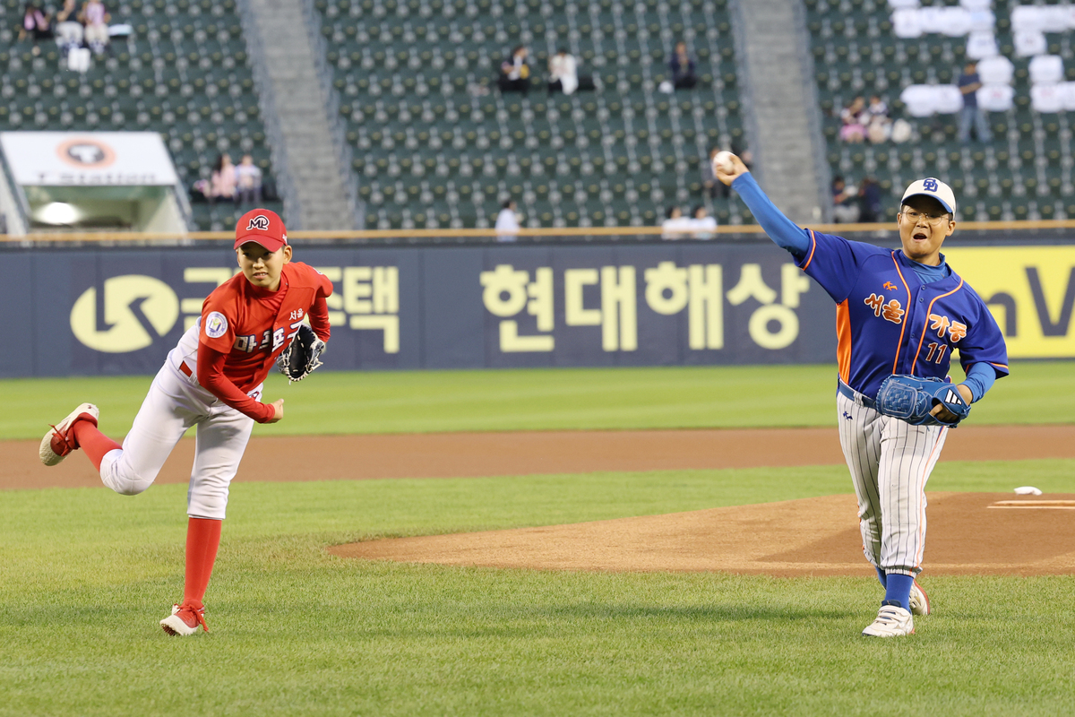 박 군은 “좋아하는 두산에서 시구할 수 있게 돼 정말 기쁘다. 김택연 선수처럼 멋진 투수로 성장하겠다”고 밝혔다. 배 군 역시 “평생 잊을 수 없는 추억을 만들어 주셔서 감사드린다. 앞으로 잘 성장해서 대한민국을 빛내는 야구 선수가 되겠다”고 밝혔다.
