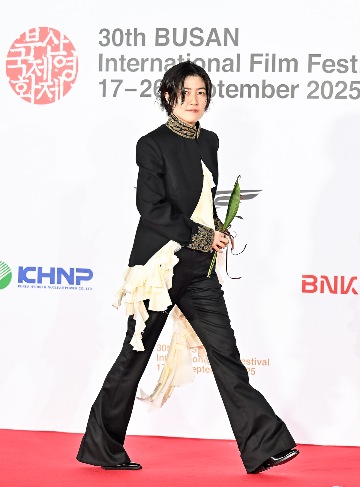 배우 심은경이 '제30회 부산국제영화제(BIFF)' 개막식 레드카펫에서 맥퀸 AW25의 수트를 착용해 카리스마 넘치는 패션을 완성했다.