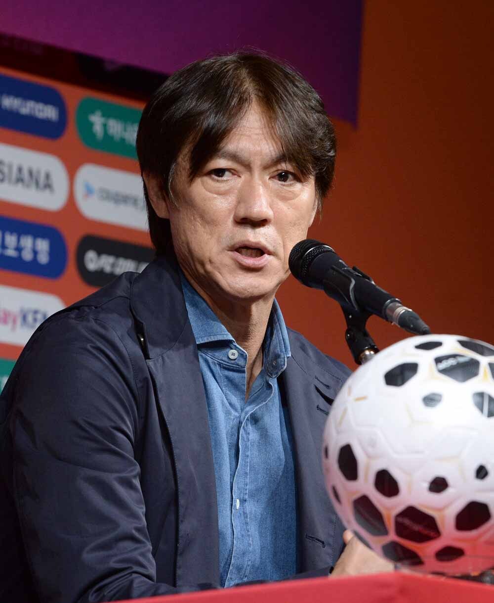 홍명보 한국축구대표팀 감독이 29일 서울 종로구 축구회관에서 열린 하나은행 초청 국가대표팀 친선경기 10월 대표팀 소집명단발표 기자회견에서 질문에 답하고 있다. 사진=김두홍 기자 kimdh@sportsworldi.com