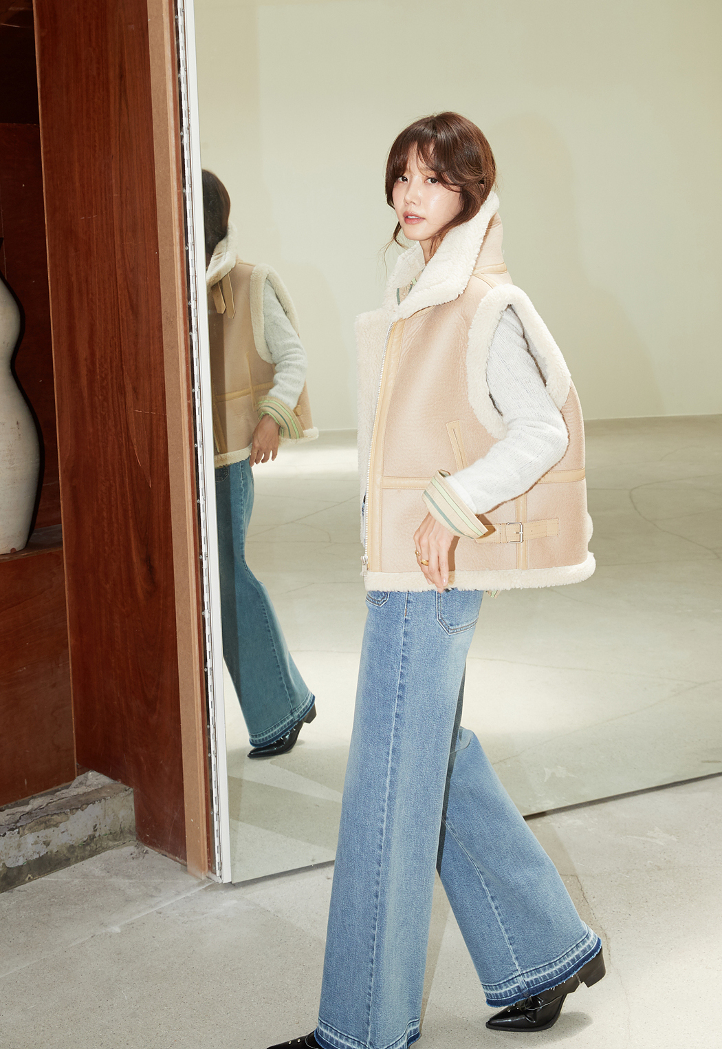 채정안이 애정하는 스타일을 엄선한 이번 컬렉션에서는 그녀의 시그니처 아이템이라 할 수 있는 스웨이드 자켓를 비롯해 무스탕 베스트, 다양한 실루엣의 데님 슬랙스 등을 선보이며, 자유롭고 쿨한 무드에 현대적 럭셔리함이 결합된 셀렉티브한 스타일을 제안한다.