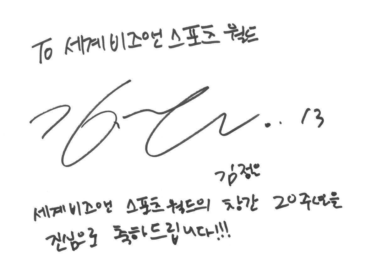 2005년 첫 장을 연 세계비즈앤스포츠월드는 올해로 창간 20주년을 맞았다. 김정은 역시 그 시간을 오롯이 함께 걸어왔다. 그는 끝으로 “각자의 자리를 묵묵히 채웠다는 건 감사한 일이다. 다음 20년 뒤에도 꼭 다시 만나 예전 얘기를 다시 나누면서 웃을 수 있으면 좋겠다”고 목소리를 높였다.