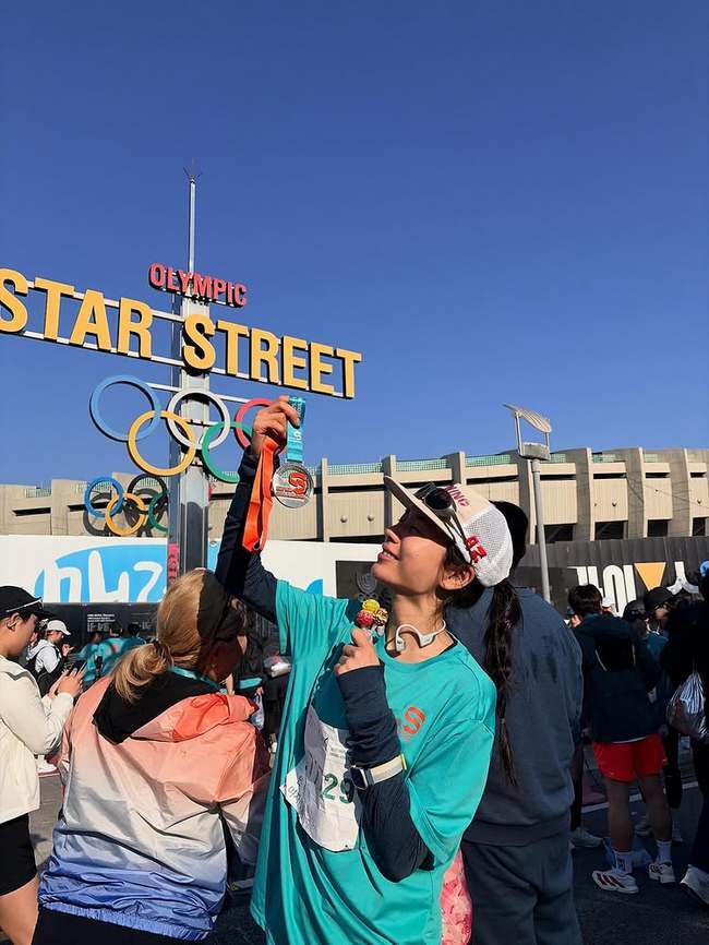 공개된 사진 속 그는 ‘올림픽 데이 런 2025’ 대회에 참가해 10km를 완주했으며, 기념 메달을 들고 환하게 웃는 모습이 담겼다.