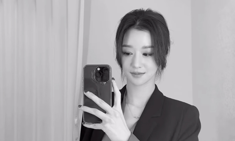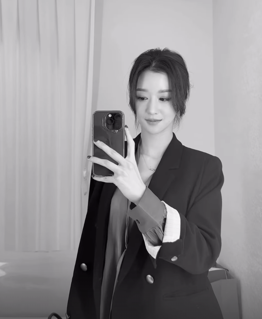 공개된 영상 속 서예지는 거울 셀카를 촬영하며 단정한 로우번 헤어와 수트를 착용한 모습으로 등장했다.