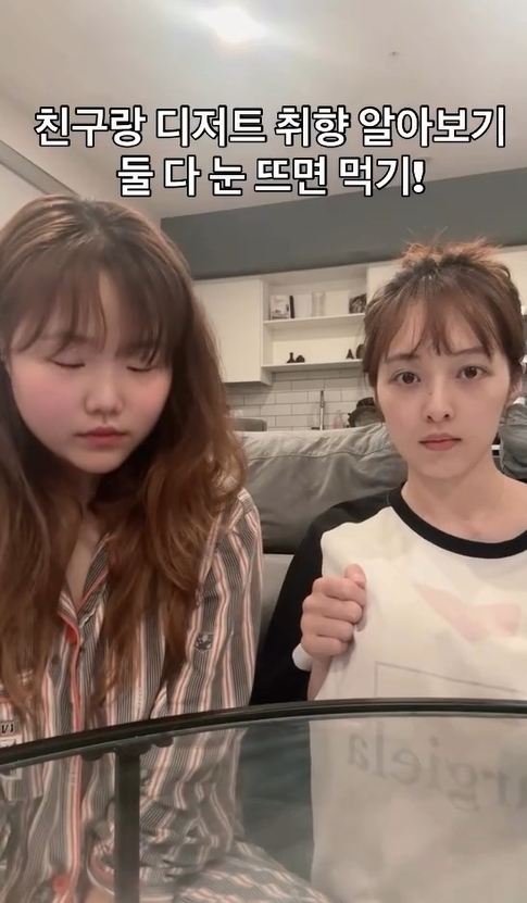 이수현은 17일 자신의 소셜미디어에 “친구랑 디저트 취향 알아보기. 둘 다 눈 뜨면 먹기!”라는 제목의 릴스를 공개했다. 영상 속 이수현과 김보라는 눈을 꼭 감은 채 등장했다. 김보라는 디저트를 기대하는 듯 눈을 뜨고 이수현을 바라봤지만, 이수현은 끝까지 눈을 감아 웃음을 선사했다.