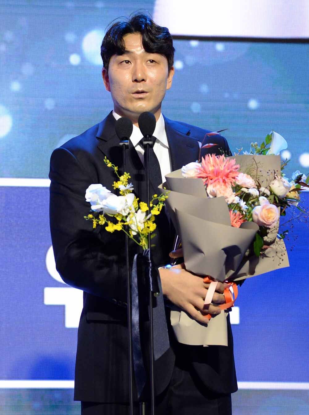 프로야구 퓨쳐스리그 KT 조이현이 24일 서울 송파구 잠실 롯데호텔 월드 크리스탈볼룸에서 열린 '2025 신한 SOL뱅크 KBO 시상식'에서 평균자책점상을 수상한 뒤 소감을 발표하고 있다. 사진=김두홍 기자 kimdh@sportsworldi.com