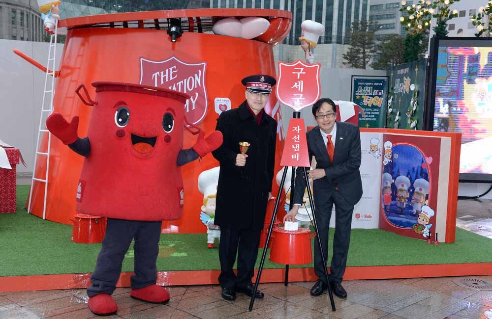 이경우 휘슬러코리아 대표(오른쪽)가 27일 서울 중구 서울광장에서 열린 '2025 휘슬러X구세군 사랑의 레시피 팟 자선냄비 전달식'에서 자선냄비에 성금을 넣으며 기념촬영을 하고 있다. 사진=김두홍 기자 kimdh@sportsworldi.com