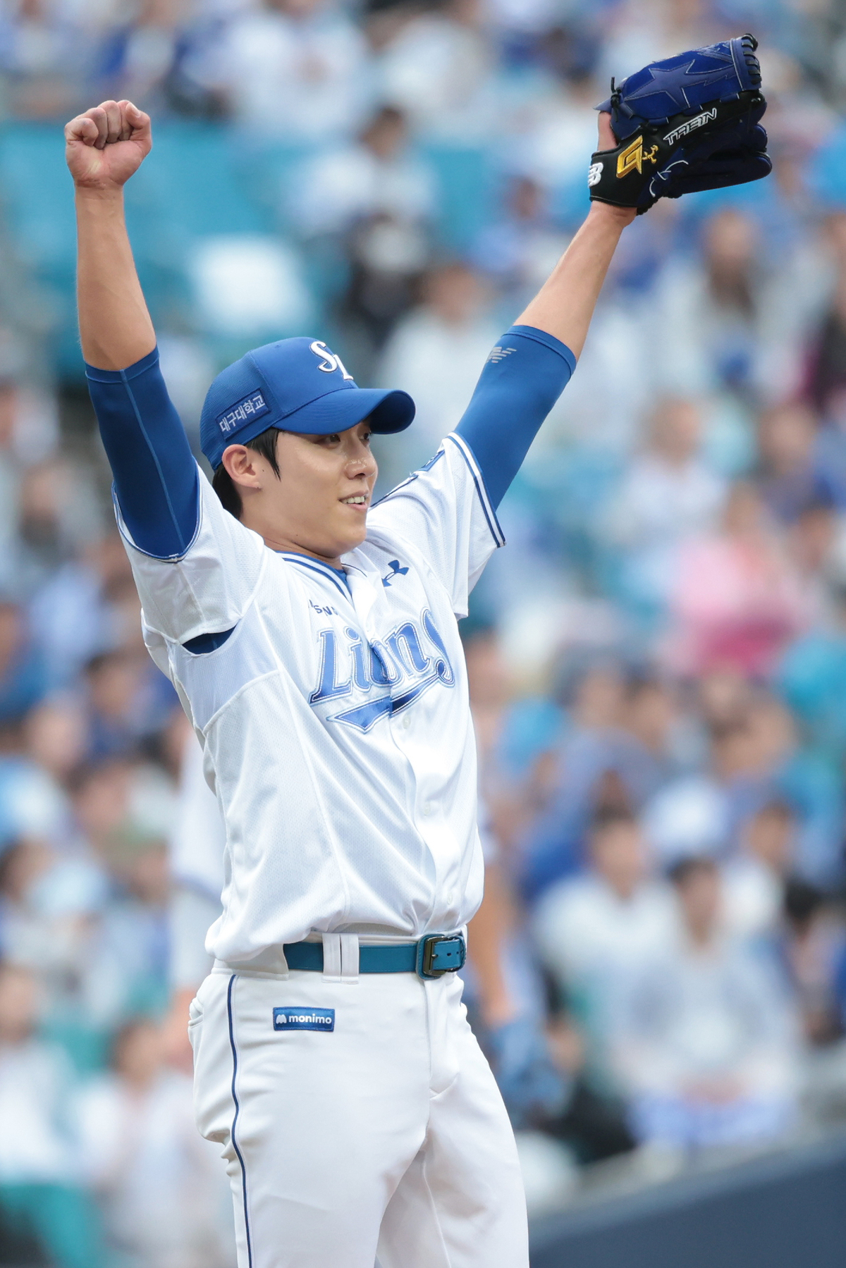 위기가 없었던 것은 아니다. 6회 초였다. 박민우와 맷 데이비슨을 각각 볼넷, 몸에 맞는 볼로 내보냈다. 1사 1,2루. 원태인의 투구 수는 이미 100개에 육박했다. NC는 권희동 타석서 대타 카드를 꺼내들었다. 박건우다. 원태인과 강민호는 집요하리만큼 슬라이더를 고집했다. 6개를 연달아 던졌다. 그리고 풀카운트 승부서 결정구로 147㎞짜리 직구로 헛스윙 삼진을 잡아냈다. 후속타자 이우성까지 잡아낸 뒤 내려오는 원태인에게로 뜨거운 박수가 끊이질 않았다.