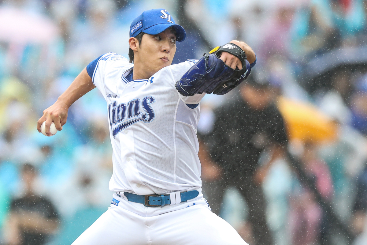 반드시 이겨야만 하는 경기, 뒤를 돌아볼 여유 따윈 없었다. 원태인은 경기 초반부터 100% 힘을 쏟아 부었다. 시속 150㎞대 직구를 바탕으로, 특유의 예리한 커맨드가 인상적이었다. 포수 강민호의 리드에 따라 스트라이크존 구석구석으로 꽂혔다. 단 1점도 내주지 않겠다는 의지가 엿보이는 듯했다. 1회 상대 선발투수 로건 앨런이 흔들리는 틈을 타 2점을 먼저 올렸지만 공격 자체가 원활한 것은 아니었다. 6회까지 팀 안타는 단 1개, 그마저도 적시타는 아니었다.