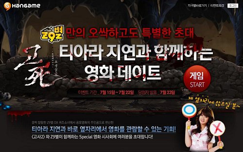NHN 한게임이 캐주얼 게임 ‘내맘대로 Z9별’(이하 지구별) 유저를 대상으로 영화 ‘고사2’ 시사회를 갖는다.