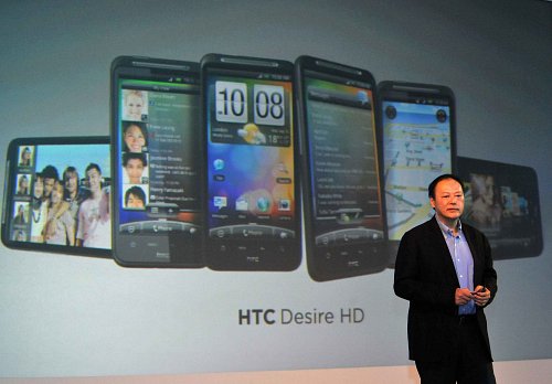 | HTC 피터 쵸우 대표가 KT를 통해 30일 출시한 ‘HTC디자이어HD’를 소개하고 있다. |