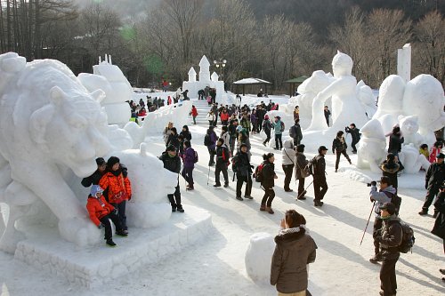 눈축제의 위상은 눈 조각의 크기와 정교함 그리고 숫자로 결정된다. 태백산 눈축제가 타의 추종을 불허하는 명성을 초창기부터 유지하고 있는 비결도 바로 이 때문이다. 올해는 태백산 눈축제의 위상을 한층 더 높이기 위해 지구촌 곳곳의 문명을 완벽하게 재현한 초대형 눈 조각들이 위용을 드러낸다.