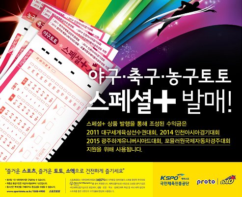 스페셜 플러스 회차는 2011대구육상선수권대회, 2014년 인천아시아경기대회, 2015년 광주하계유니버시아드대회, 포뮬러 원(F1) 등 각종 국제대회의 성공적 개최를 지원하기 위해 발행한다. 이번에 발매할 대상 종목 및 상품을 살펴보면 야구, 축구, 농구 종목을 대상으로 현재 발매하고 있는 해당 종목의 스페셜 게임의 형식과 동일한 유형의 상품으로 기존 스페셜과 달리 스페셜 플러스란 이름의 상품으로 발매한다.