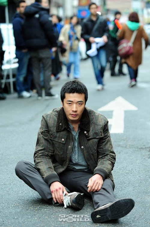 권상우는 이날 낡아보이는 점퍼에 짧게 자른 머리를 한 채 지나가는 오토바이에 치이고서도 아픔을 느끼지 못하는 장면을 촬영했다.