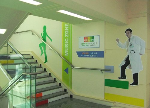‘피아노 계단’은 적외선 센서와 LED 조명을 장착해 피아노의 첫 번째 음계인 ‘도’부터 차례로 소리와 빛이 함께 나도록 했으며, ‘다이어트 계단’은 계단 한칸을 이용할 때 마다 소비되는 칼로리를 표시했다. 또 ‘건강정보 계단’은 흡연의 원인, 담배의 유해성분, 올바른 식습관의 중요성 등 다양한 정보를 제공하고 있다.