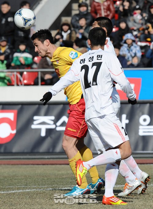 [SW포토]헤딩슛하는 요반치치 기사입력 2012-03-11 18:58:01 기사수정 2012-03-11 18:58:01 글씨 크기 선택 가장 작은 크기 글자 한 단계 작은 크기 글자 기본 크기 글자 한 단계 큰 크기 글자 가장 큰 크기 글자 프로축구 성남 일화의 요반치치가(맨 왼쪽) 11일 탄천종합운동장에서 열린 2012 K-리그 상주 상무와의 경기에서 상대 하성민을 제치고 헤딩슛을 시도하고 있다./성남=김재원 인턴기자 jkim@sportsworldi.com [ⓒ 세계비즈앤스포츠월드 & sportsworldi.com, 무단전재 및 재배포 금지] 메뉴보기 페이스북 공유 트위터 공유 url 공유 더보기