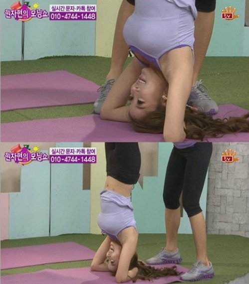 이날 방송에서 원자현은 송다은의 도움으로 과감히 물구나무 서기에 도전했다. 그러나 물구나무를 서는 중 상의가 흘러내려 원자현의 허리와 배가 드러났다.