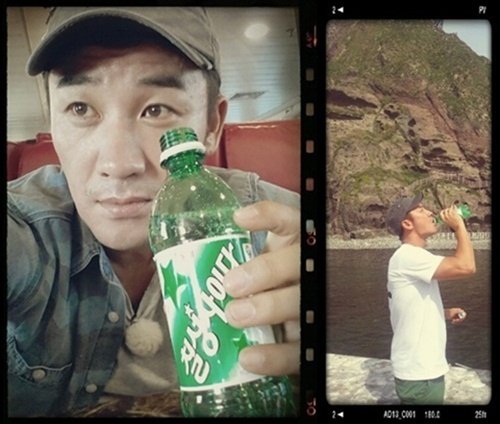 공개된 사진 속 엄태웅은 탄산음료를 카메라에 들이댄 채 카메라 너머 어느 한 곳을 응시하고 있다. 또 다른 사진에서는 독도의 자연 경관을 배경으로 탄산음료를 시원하게 마시는 모습을 선보였다. 마치 CF의 한 장면을 연상케 하는 포즈로 누리꾼들의 이목을 집중시켰다.