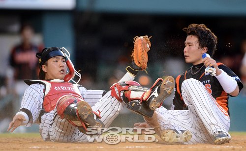 [SW포토]득점하는 롯데 용덕한 기사입력 2012-08-07 21:35:36 기사수정 2012-08-07 21:35:36 글씨 크기 선택 가장 작은 크기 글자 한 단계 작은 크기 글자 기본 크기 글자 한 단계 큰 크기 글자 가장 큰 크기 글자 프로야구 롯데의 용덕한(오른쪽)이 7일 잠실구장에서 열린 LG와의 경기 3회초 1사 1,2루 김주찬의 적시타때 득점하고 있다. LG 포수는 조윤준./잠실=김두홍 기자 kimdh@sportsworldi.com [ⓒ 세계비즈앤스포츠월드 & sportsworldi.com, 무단전재 및 재배포 금지] 메뉴보기 페이스북 공유 트위터 공유 url 공유 더보기