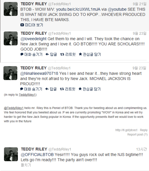 비투비의 멤버 프니엘은 테디라일리에게 “비투비를 칭찬해 주신 것에 영광”이라며 “앞으로도 한국에서 뉴잭스윙의 인기몰이를 위해 더 노력하겠다”며 감사 인사를 전했다. 이에 테디라일리는 “뉴잭스윙을 멋들어지게 소화해냈다. 파티는 계속될 것”이라며 끝까지 응원과 격려를 잃지 않았다.