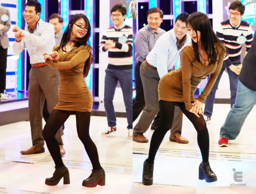 21인치 개미허리의 소유자 이수민은 볼륨감 있는 몸매라인으로 예사롭지 않은 몸놀림을 자랑했다. 특히 말춤 다음 동작에서는 완벽에 가까운 S라인으로 눈길을 사로잡은 것. ‘특별기자회견’ 14명의 기자단도 이수민과 함께 열정적인 ‘기자스타일’ 말춤을 선보이며 녹화장 분위기를 후끈 달아오르게 했다.