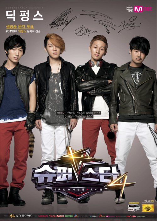 지난 2일 밤 11시 경희대 평화의 전당에서 Mnet 슈퍼스타K4 생방송 4라운드 무대가 화려하게 펼쳐진 가운데, ‘딕펑스’는 걸그룹 포미닛의 히트곡 ‘Muzik(뮤직)’을 자신들만의 스타일로 재해석한 완벽한 공연으로 시청자들의 호평을 받았다.