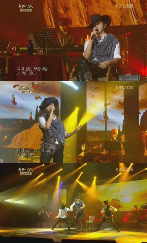이날 `불후2`는 제48대 전설로 청춘스타의 대명사 가수 이용이 선정됐으며 정동하 외에도 손호영, 스윗 소로우, B1A4, 화요비, 별이 경합을 펼쳤다.