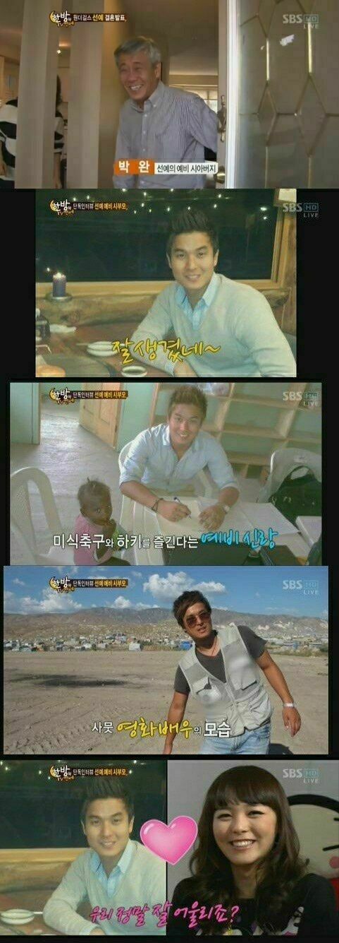시아버지 박완씨는 "선예가 심성이 곱고 겸손하고 얼굴도 예쁘고 애교도 많고 자랑할 것이 너무 많다. 이 아이를 처음 본 순간 `우리 식구가 될 것같다`라는 느낌을 받았다"고 전했다.