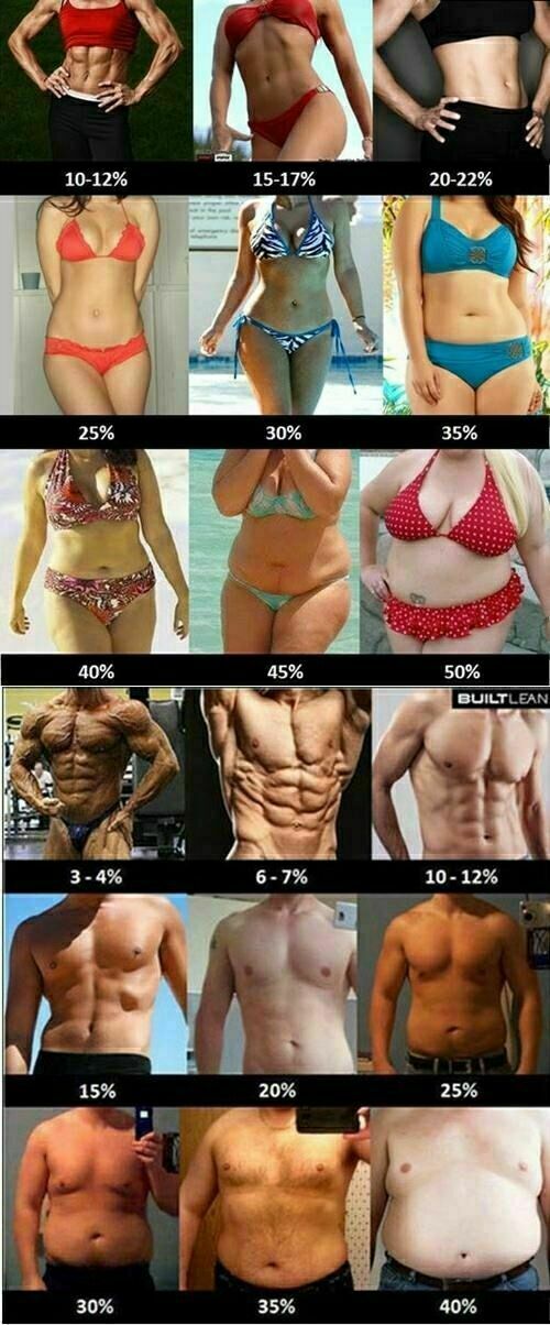 공개된 사진을 보면 체지방율 3~4%부터 40~50%에 이르기까지 각 체지방 비율에 따라 달라지는 남성과 여성의 몸매를 보여주고 있다. 남성의 경우 7% 미만, 여성의 경우 12% 미만의 체지방 소유자들은 좋은 몸매라기보단 징그럽다고 생각될 정도. 반면 체지방율이 증가할 경우 뱃살이 두드러져 체지방과 몸매의 상관관계를 한눈에 알아볼 수 있다.