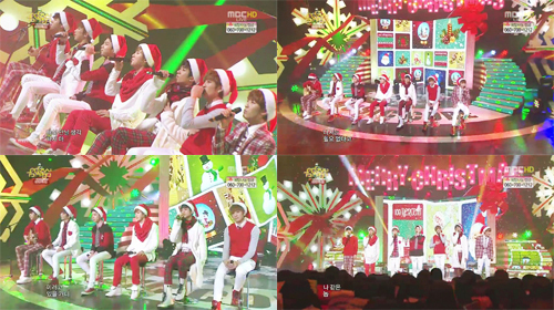 이날 멤버들은 레드 컬러의 옷과 산타클로스 모자를 매치해 눈길을 끌었다. 특히 무대 뒷편에는 ‘메리크리스마스’라고 적힌 큰 카드가 함께 연출돼 크리스마스 분위기를 더욱 자아냈다. 또 종환의 기타 선율에 맞춰 록현 혁진 상훈 민우의 어쿠스틱한 보컬과 개성 강한 찬용 창범의 랩의 하모니로 노래의 감동을 전했다.