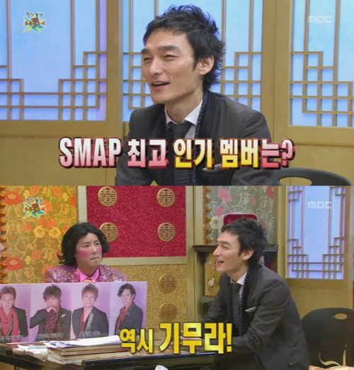 또한 인기 순위를 묻는 질문에 "인기 순위는 역시 기무라 타쿠야가 1위다"라며 "아마 2위는 다 똑같을 것이다. 거의 동등한데 기무라 타쿠야가 1표 차이로 앞섰다"고 전해 스튜디오를 웃음바다로 만들었다.