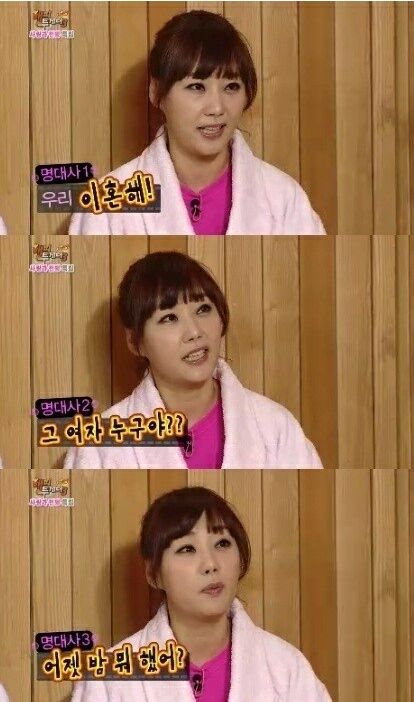 이를 듣고 있던 민지영이 “이시은 명대사 중 ‘어젯밤 뭐 했어’라고 말을 했던 남편이 나와 있었다. 또 ‘그 여자 누구야’의 주인공은 바로 나였다”고 말해 폭소를 자아냈다.