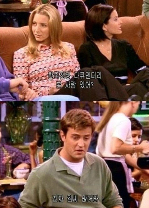 '서양인이 본 우리나라' 게시물에는 미국 드라마 '프렌즈'의 한 장면을 캡처한 사진이 등장한다. 극중 주인공들은 서로 이야기를 나누며 한국전쟁 다큐멘터리에 대해 이야기 하고 있다. 그들은 "한국은 너무 아름다운 나라야"라며 "진짜 김씨 많더라"라고 말하고 있다.
