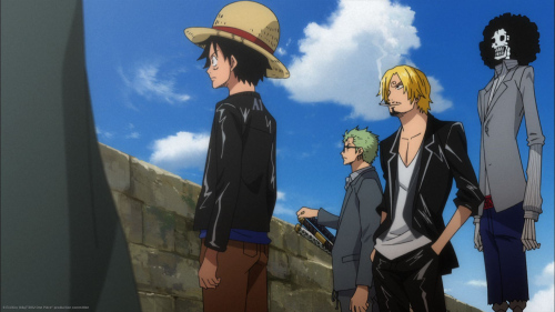 정장 슈트로 한껏 멋을 낸 해적단 가운데서도 단연 눈에 띄는 것은 역시 ‘원피스’의 주인공인 루피. 트레이드 마크인 밀짚모자를 쓰고 검은색 자켓에 반바지를 믹스매치한 모습으로 수많은 해군들을 상대하는 루피 만으로도 왜 ‘원피스’가 15년이 넘는 긴 시간동안 변함없는 사랑을 받고 있는지를 알 수 있게 한다. 게다가 루피가 입은 자켓에는 이번 작품의 의상 디자인을 맡은 아르마니 익스체인지의 로고가 뚜렷이 박혀 있기도 해 영화를 관람하는 팬들에게는 색다른 재미까지 안겨줄 전망.