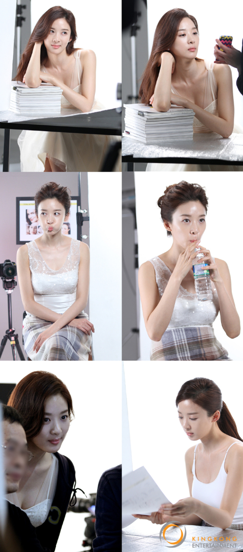 공개된 사진 속 이청아는 화이트 드레스를 입고 테이블에 살짝 기대 포즈를 취하고 있으며, 스태프가 찍어준 핸드폰 사진과 현장에 있는 화면을 통해 자신의 모습을 꼼꼼히 모니터링 하면서 남다른 열정을 보이고 있다. 또한 그녀는 촬영 준비하면서 틈틈이 수분 섭취하거나 볼에 바람을 넣어 귀여운 표정을 지어 보이고 있으며, 머리를 한 갈래로 묶고 시안을 보고 있는 모습 속 글래머러스한 몸매와 깨끗하고 청순한 매력으로 남심(男心)을 흔들고 있다.