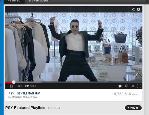 싸이 ‘젠틀맨’ 뮤직비디오 벌써 유튜브 조회수 1000만 돌파…엄청난 속도