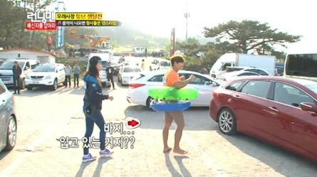 이 장면에서 김종국은 자신의 피부색과 비슷한 색상의 바지를 입고 허리에 두개의 튜브를 끼고있어 마치 하반신에 아무것도 입지 않은 것 같은 착시를 불러일으켰다.