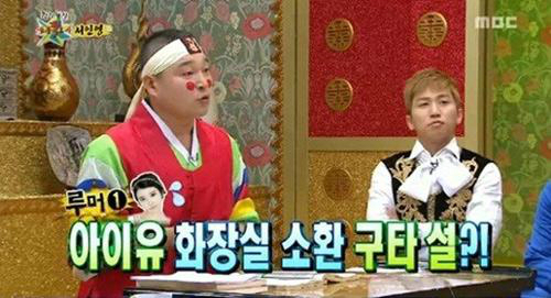 가수 서인영은 23일 MBC 예능프로그램 '황금어장-무릎팍도사'에 출연해 후배 아이유를 화장실로 데려가 구타했다는 소문에 대해 언급했다.