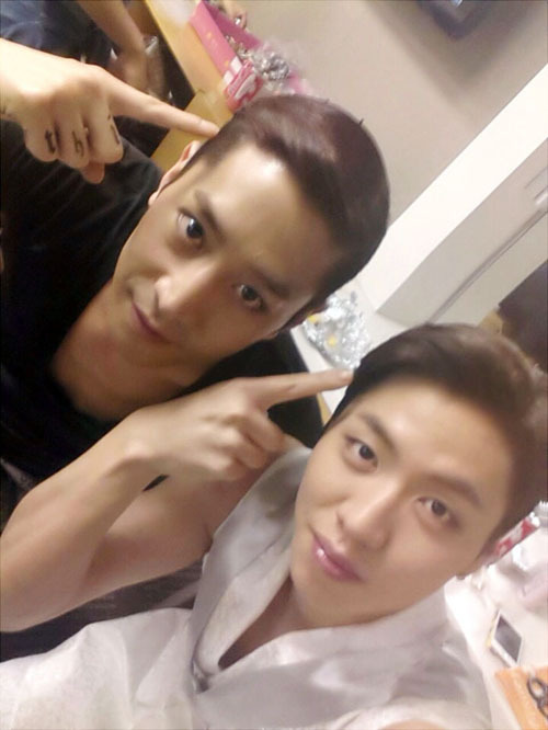 이번 사진은 최근 컴백한 신화 에릭과 23일 Mnet ‘엠카운트다운’을 통해 첫 컴백 신고식을 치른 백퍼센트 찬용이 대기실에서 만나면서 찍은 것으로 알려졌다. 특히 ‘원조 짐승남’과 ‘新짐승남’이라 불리는 이들의 만남이어서 더욱 주목 받고 있다.