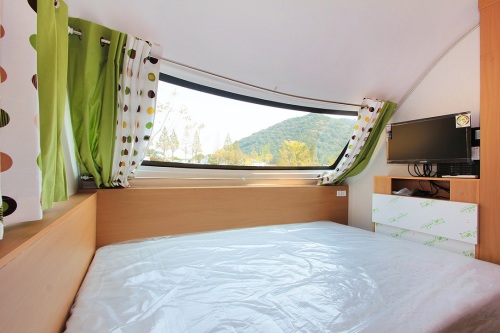 캠핑용 차량 ‘캐러밴’은 이동식 주택이라고 불릴 만큼 차량 안에 침대, 테이블, 냉장고, 에어컨, 화장실 등 고급 숙박시설 못지않은 시설이 갖춰져 있어 쾌적한 숙박이 가능하다.
