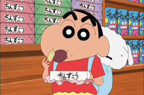 공개된 사진 속에는 여러 가지 종류의 비스킷이 놓은 슈퍼에서 입가에 과자 부스러기를 묻히며 맛있게 먹고 있는 짱구의 모습이 담겨있다.