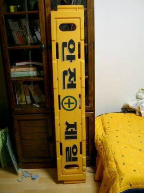 술에 잔뜩 취해 정신을 잃으면서 어떻게 가져왔는지 의문이 드는 물체는 다름아닌 '안전제일' 입간판이다.