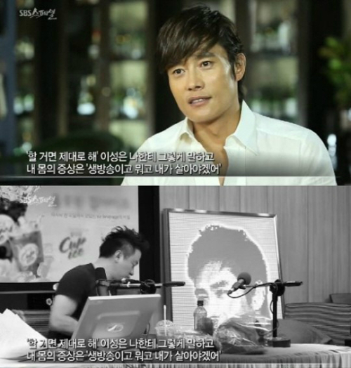 이에 대해 이병헌은 “그 때 방송사고 나는 줄 알았다”며 “그 자리에서 쓰러지거나 내가 더는 견디지 못해서 미안하다고 말하고 나오거나 둘 중 하나가 될 뻔했다”고 말하며 공황장애가 있음을 고백했다.