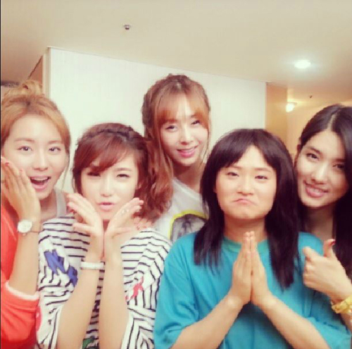 사진속 오소녀 멤버들은 밝은 표정으로 있었으며 유빈으로 변신한 김신영이 조화롭게 어울리는 모습이 인상적이다.